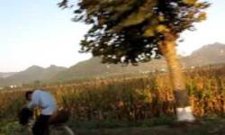 開城と平壌の高速道路が平山付近で工事中のため、一般道に降りたあたりの光景である。大豆と粟の畑が続いていて、道路端に並んで植えらているコスモスがキレイである。秋の北朝鮮は、色が鮮やかで、絵になっている。 |