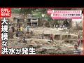大雨洪水で道路陥没の瞬間