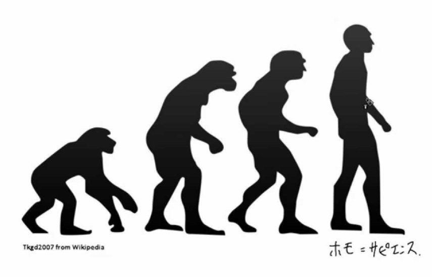 今から数百万年前には、霊長類から人類と類人猿が別々に
