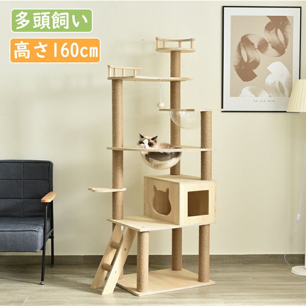 キャットタワー 木製 天然木 据え置き 宇宙船付き 猫タワー ファブリック 夏用 階段 機能満載 爪とぎ 多頭飼い 安定感抜群 頑丈 省スペース 猫ハウス キャットポール おしゃれ 据え置き型 ポンポンおもちゃ 猫用品 おしゃれ 隠れ家 猫ハウス